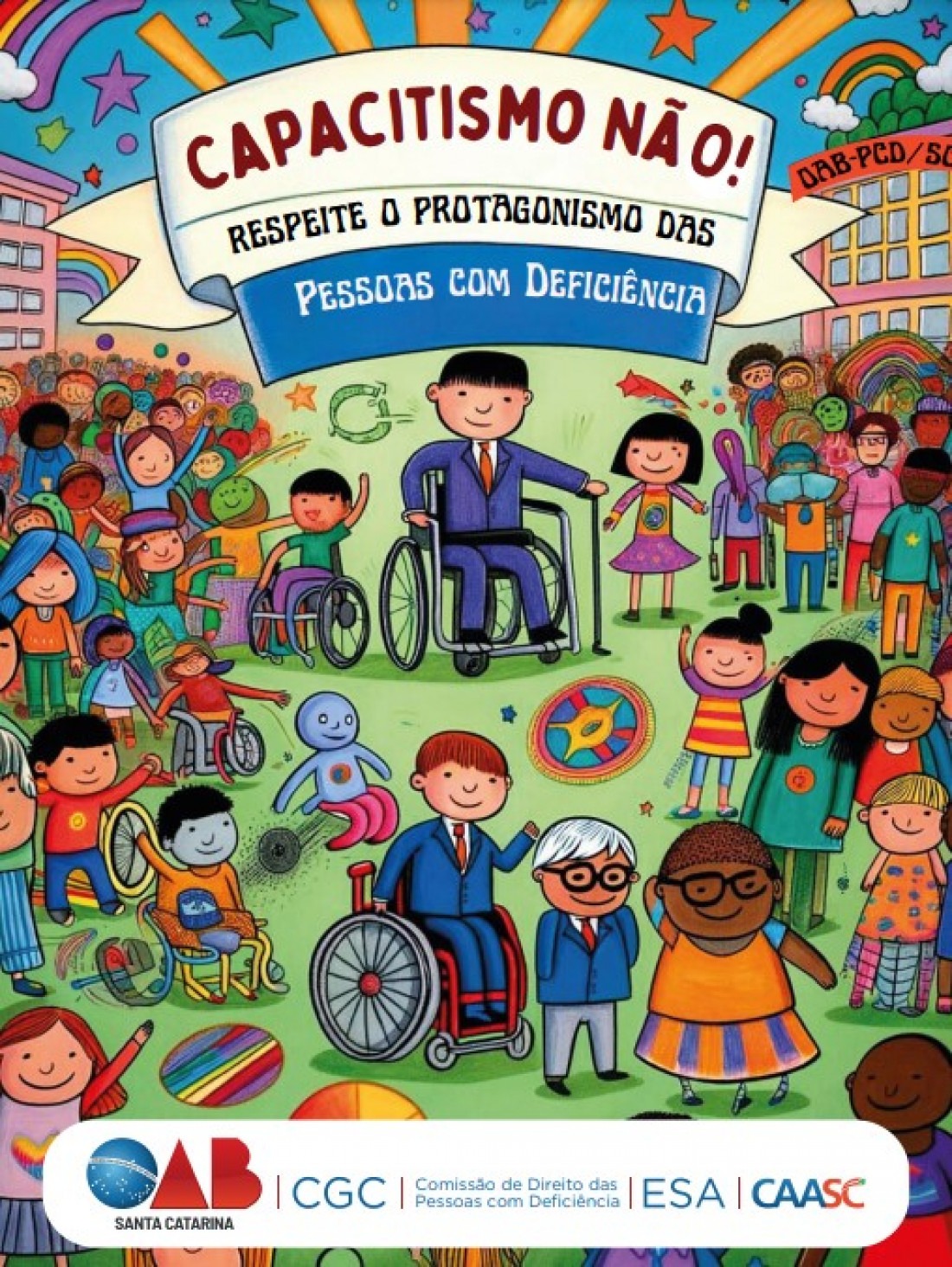 A Ordem dos advogados de SC, OAB/SC, através de sua Comissão dos Direitos das Pessoas com Deficiência, lançou no dia 24/06/24 a cartilha “Capacitismo Não! Respeite o Protagonismo das Pessoas com Deficiência”.